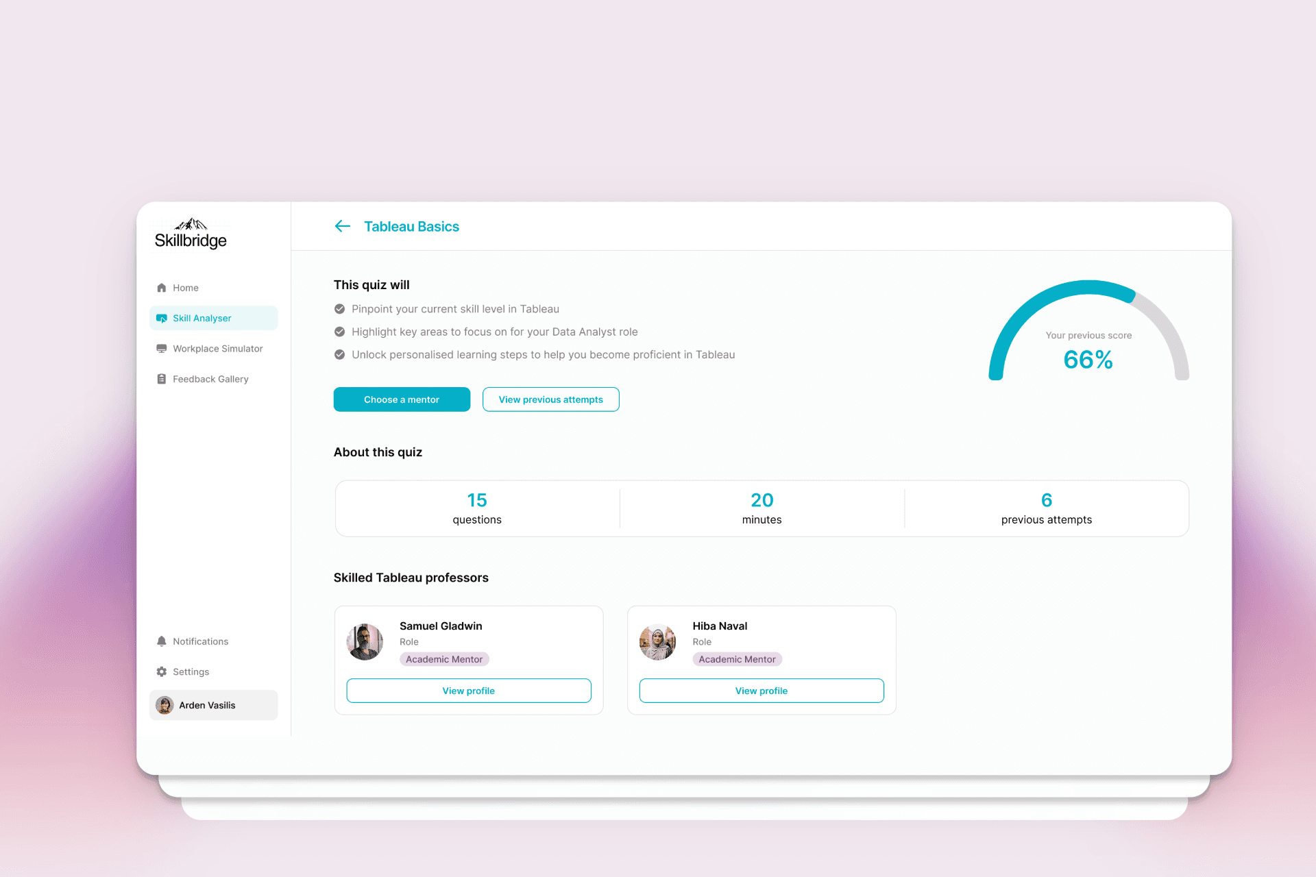 Skillbridge is an AI-powered platform that helps work-integrated learning students build the skills they need to succeed through personalised quizzes, real-world workplace scenario simulations, and real-time feedback from mentors.